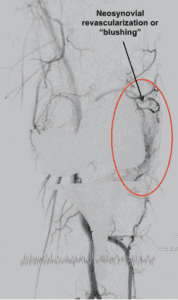 There is increasing evidence and literature demonstrating an alternative cause of these symptoms may be associated with abnormal blood vessels forming in the tissues surrounding your knee joint. As part of an abnormal healing process following knee surgery, new arteries can grow within and around the joint (known as the synovium). This is called “synovial neo-revascularization” (NSR).